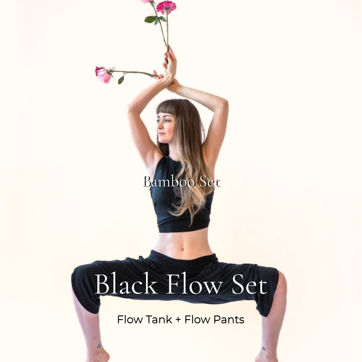 This bundle includes our two favorite essentials: the Bamboo Flow Tank and Bamboo Flow Pant. The Flow Pant is perfect for every occasion—comfortable and flattering for yoga, yet stylish enough for going out. Its versatile design allows you to lounge or dress up with ease. Made with 95% bamboo and 5% spandex, these pants offer a supportive fit that avoids sagging, with a tulip hem, deep pockets, and a fold-over waist for added comfort. The Flow Tank is an ultra-soft muscle tank featuring a keyhole back and an adjustable tie, giving you the choice between a cropped or hip-length look. Both pieces are pre-shrunk, machine washable, and designed to keep you comfortable all day.