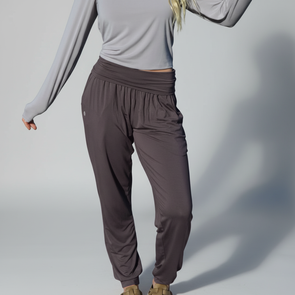 These are a Full Length cuffed version of our Flow Pant! New for Fall 2021 in the beautiful dark warm purple/brown shade of Raisin.