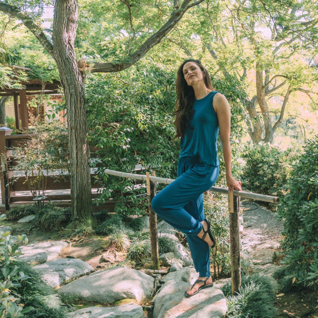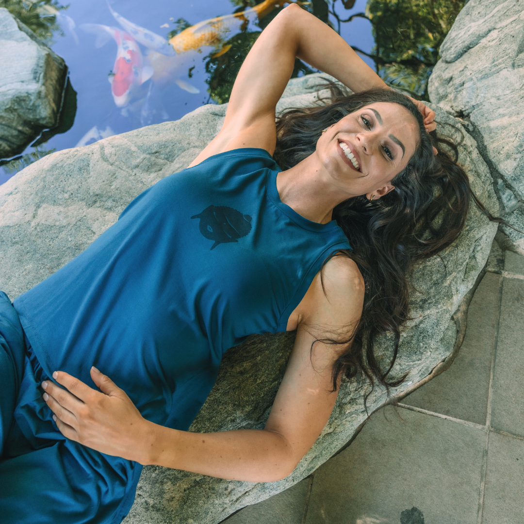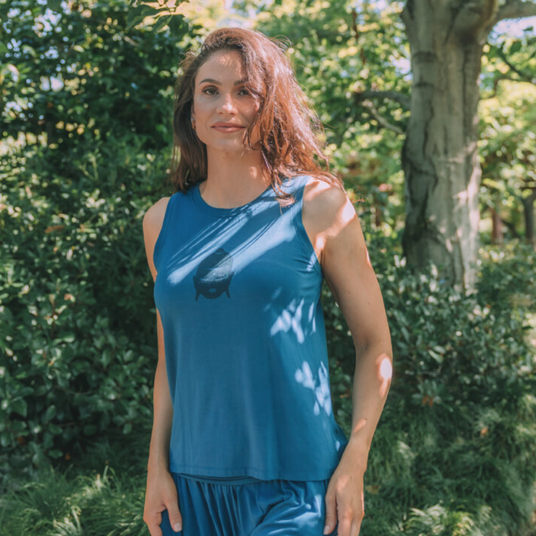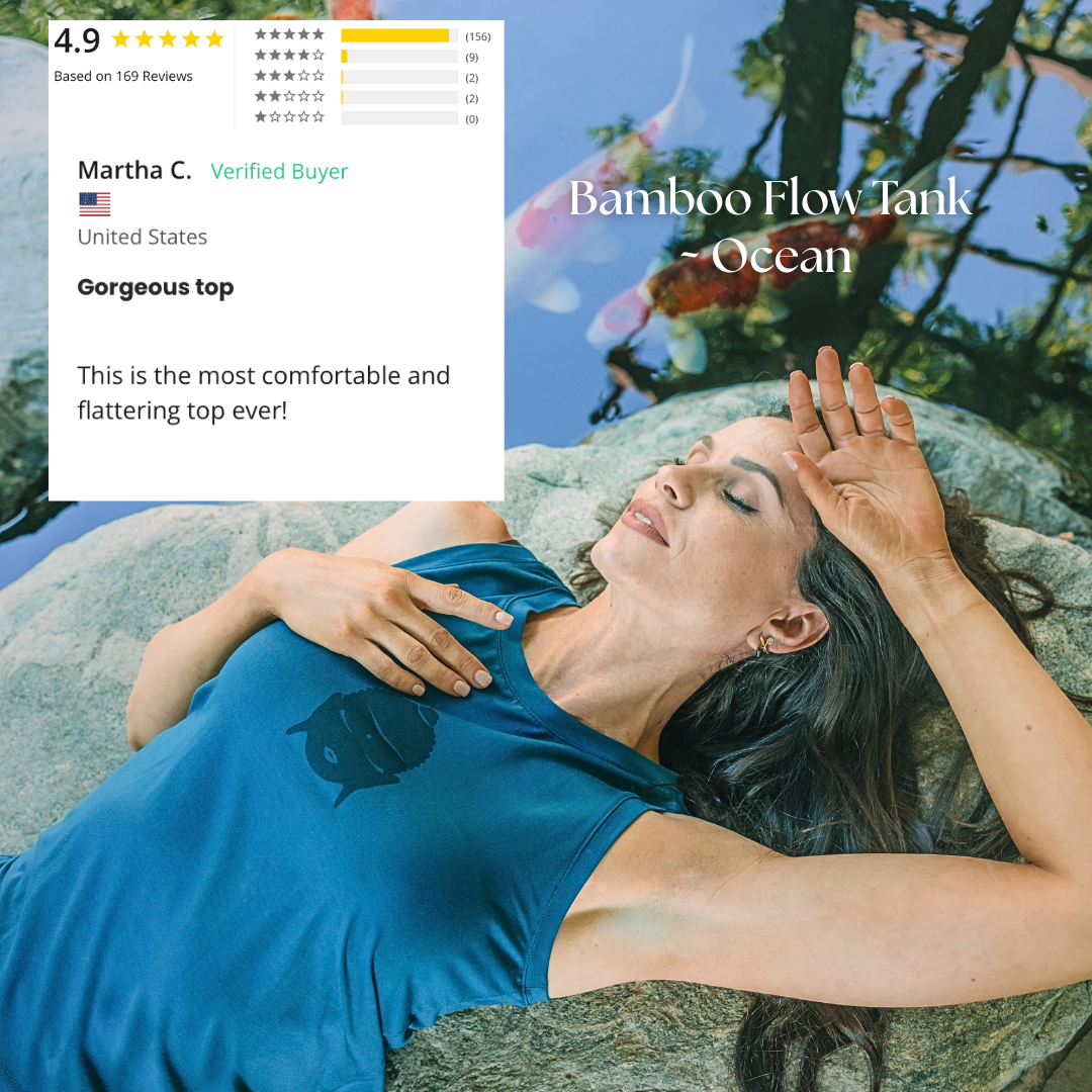 This fall, get two fan favorites in one bundle at a great price. The Flow Tank is made from soft ocean blue bamboo with a stylish darker blue print. It offers a loose, comfortable fit with a keyhole back and adjustable tie so you can wear it cropped or longer. The Essential Pant is incredibly soft and perfect for yoga, shaped to hug your body without sagging thanks to spandex. Both pieces regulate temperature, resist odors, and are easy to care for. With deep pockets, cuffed hems, and a foldable waist, they combine comfort and style effortlessly. Inseam is 31.5".