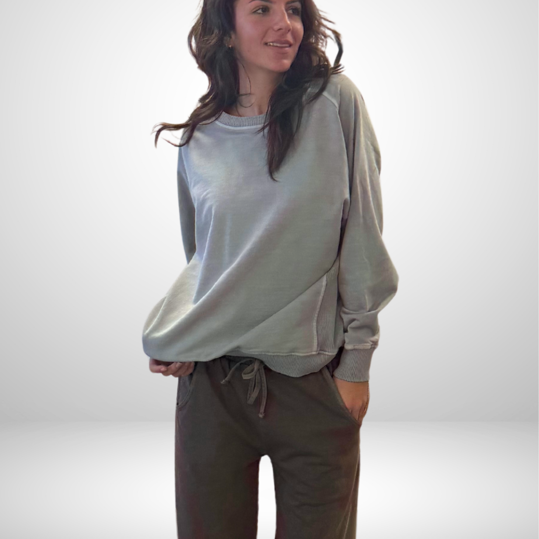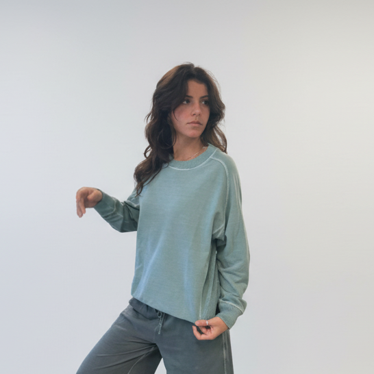 Available in Agua and Mist - mix and match this crew with our Coastal Cotton Pants, this is a piece you’ll reach for often — easy to wear, easy to live in.